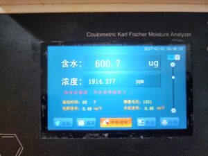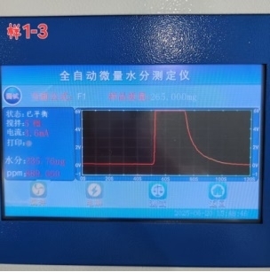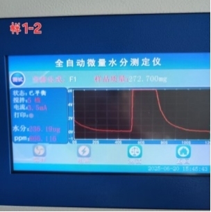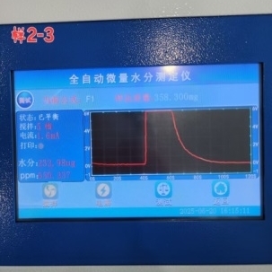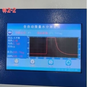 • 在儀器上輸入打入樣品的重量,等待測試結(jié)束,儀器會自動計算樣品的水分含量。