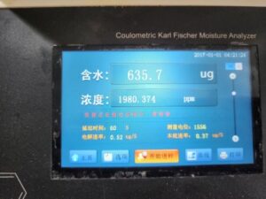 序號 樣品質(zhì)量(mg) 水分(ug) 濃度(ppm)