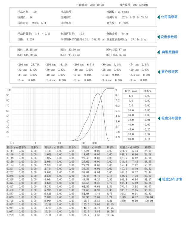 | 自行DIY | 用戶自定義要顯示的數(shù)據(jù),根據(jù)粒徑求百分比、根據(jù)百分比求粒徑或根據(jù) |